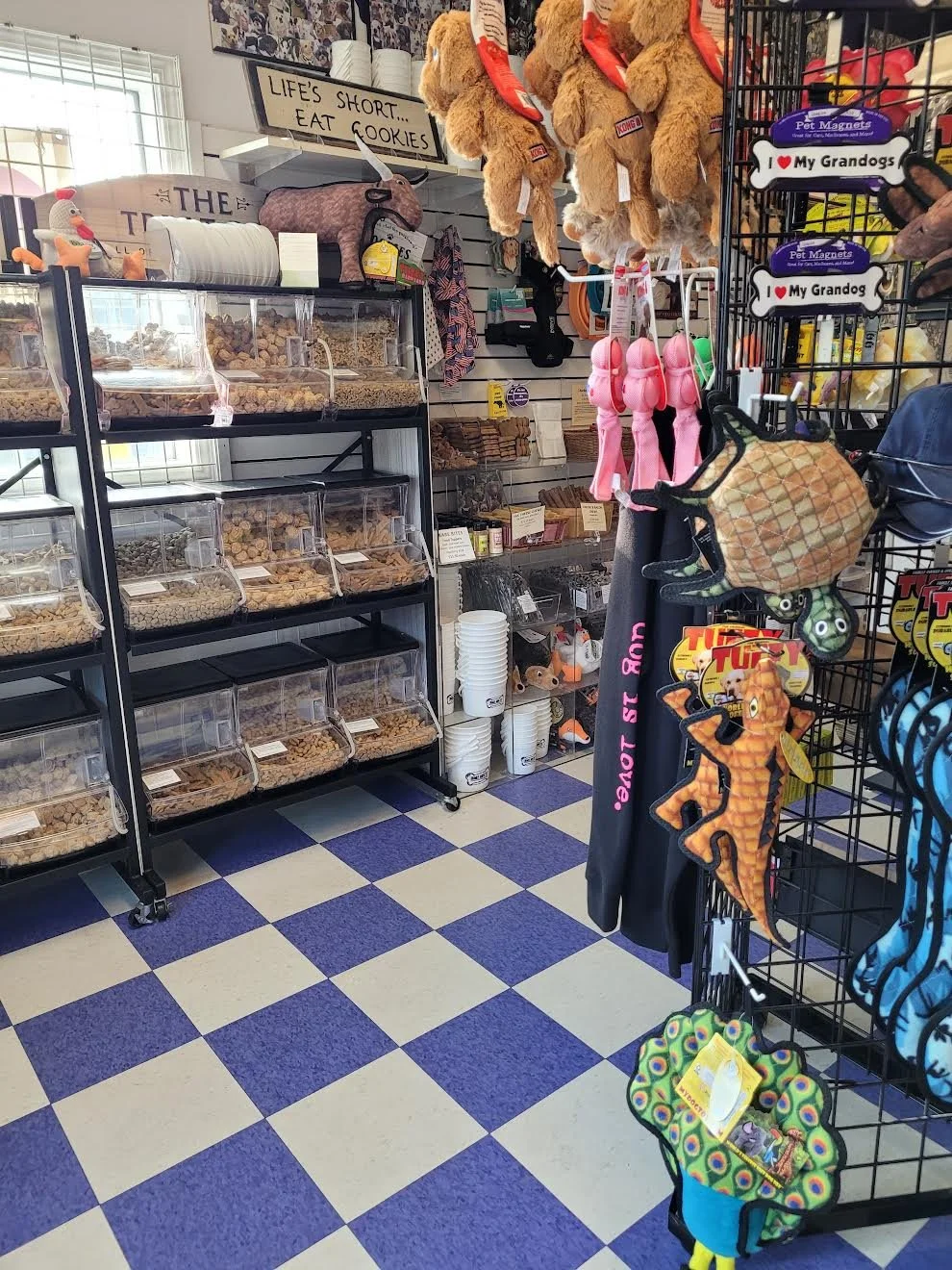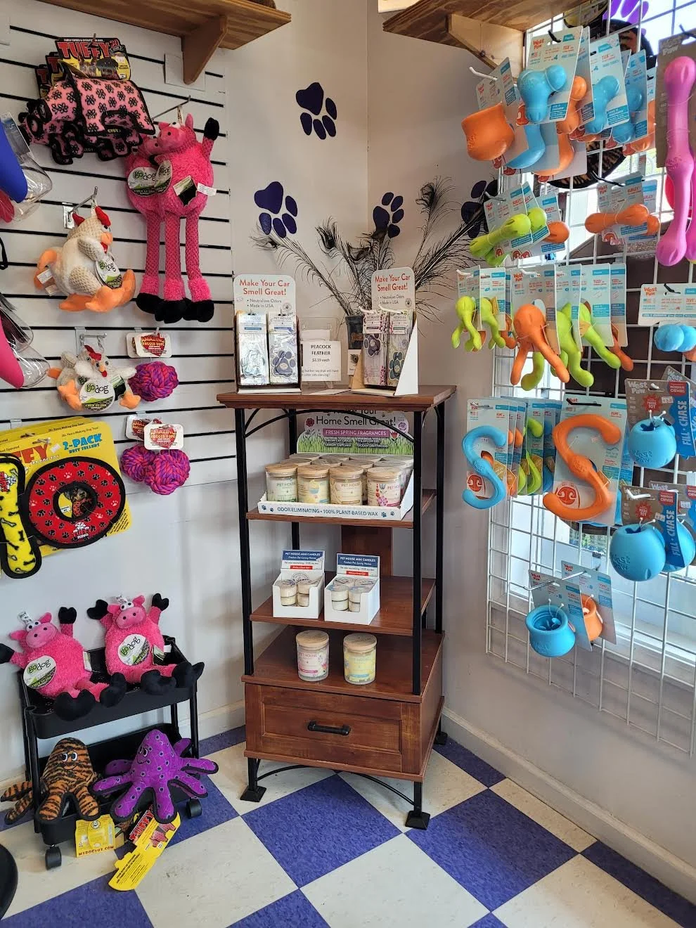 In addition to our large selection of all natural treats, we carry many other dog (and a few cat) related items. In-store, we feature the most durable dog toys currently available by West Paw (made in the U.S.), Tuffies and others. We are proud to offer Lupine leashes and collars (guaranteed for any reason, even if chewed), Doggie Design harnesses, One Fur All Pet Candles, award winning natural grooming products from Aroma Paws, and so much more! Our treats are all U.S. made. All of our chews are American sourced and made.